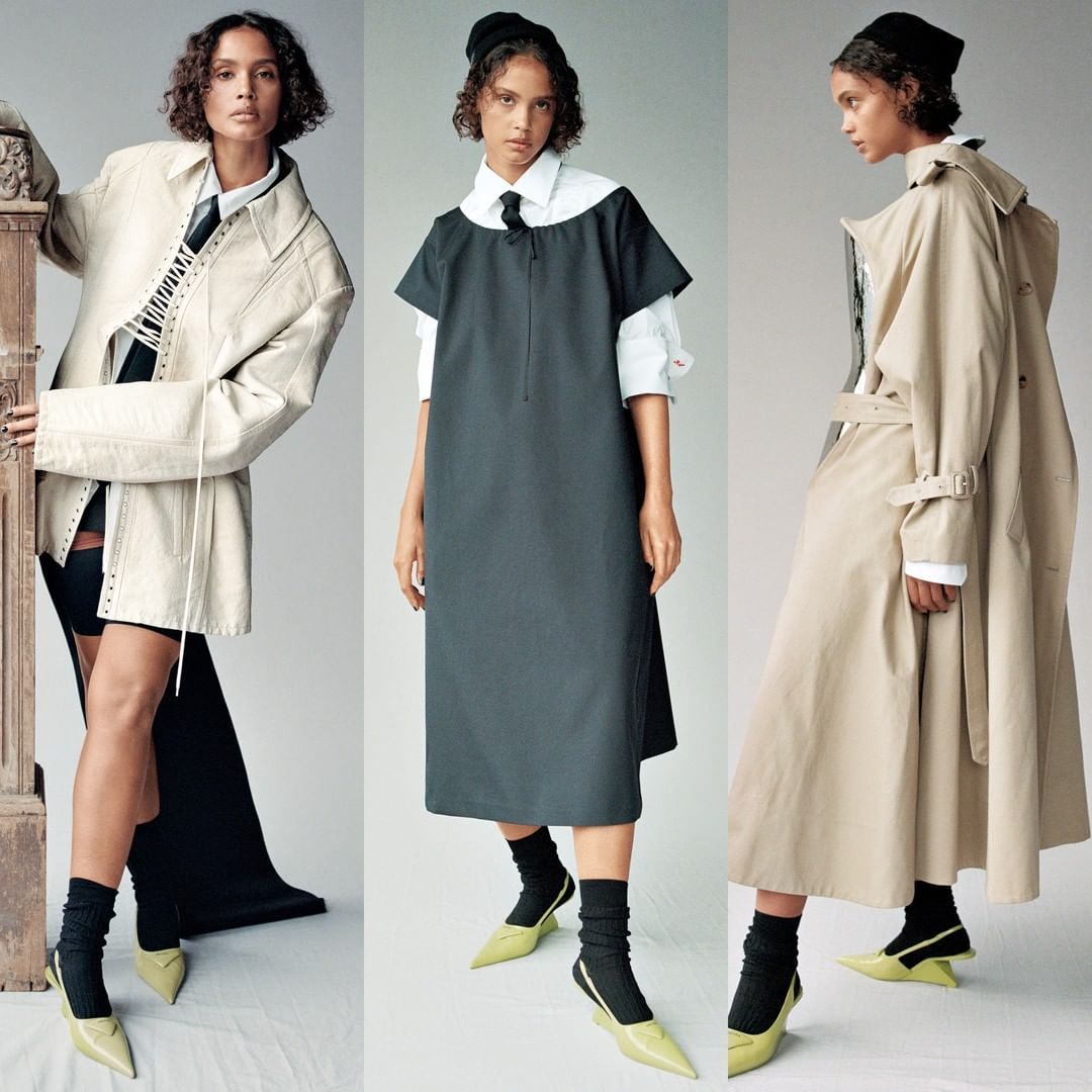 1️⃣ 定番の白シャツはジャケット、ワンピース、トレンチコートを使ったこなれたレイヤードスタイルで味付け。