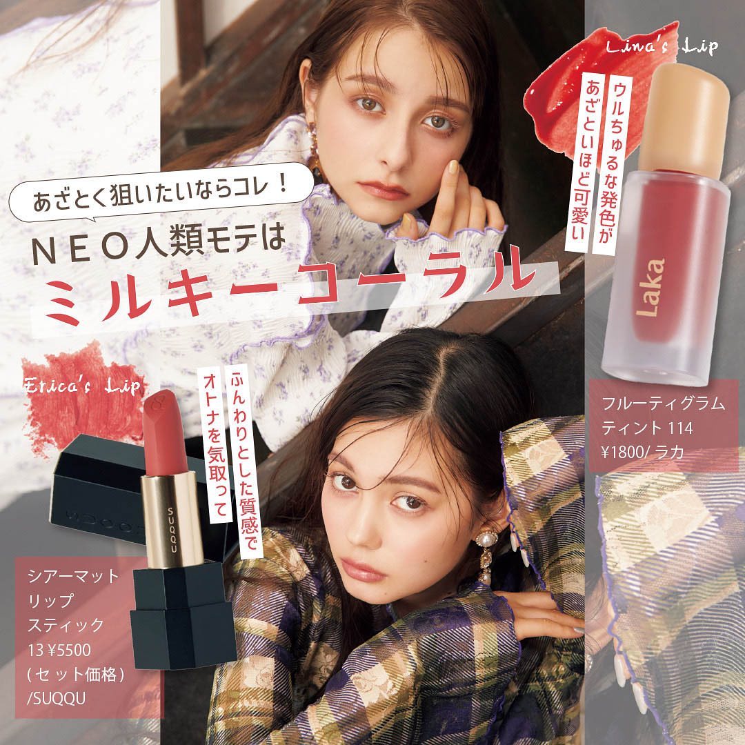 #vivi #vivi9月号 #村上愛花 #嵐莉菜 #viviモデル #viviモデルは世界イチ可愛い #秋コスメ2022 #秋コスメ #秋メイク #トレンドコスメ #ミルキーコーラル #秋リップ #リップティント #マットリップ #laka #フルーティグラムティント #suqqu #シアーマットリップスティック #旬顔 #最新コスメ