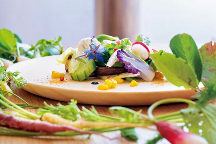 使用する食材の9割以上が #オーガニック で、無農薬・無肥料栽培の自家菜園で育てられた野菜。動物性食品や合成添加物も不使用で、安心して自然と食を堪能できます。食材だけでなく、料理の見た目にもこだわり、目でも楽しめます✨