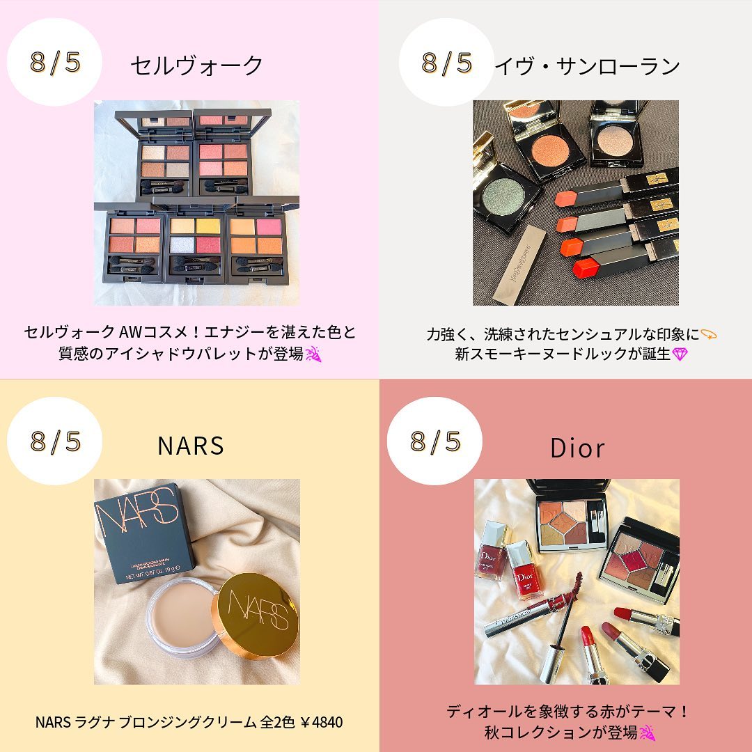 #voce #vocemagazine #ヴォーチェ #コスメ好きさんと繋がりたい #コスメカレンダー #先取りコスメ #限定コスメ #限定アイテム #秋コスメ #秋冬コスメ #アナスイ #ポーラ #ポーラBA #ポールアンドジョー #イプサ #シュウウエムラ #THREE #エトヴォス #ジルスチュアート #NARS #カネボウ #アディクション #ジバンシイ #セルヴォーク #YSL #ディオール