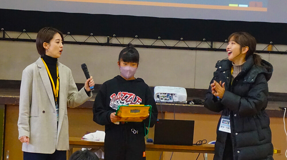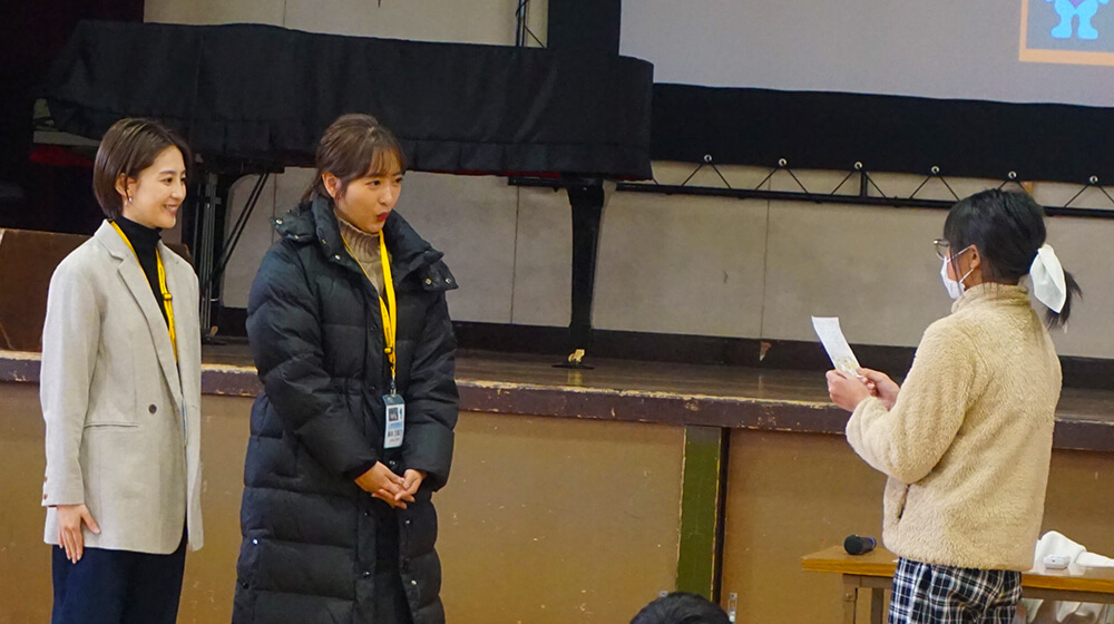 そして、出前授業『あなせん』担当してくれた宮司アナ、藤本アナにクラスの代表から素敵なお礼のメッセージを頂きました。